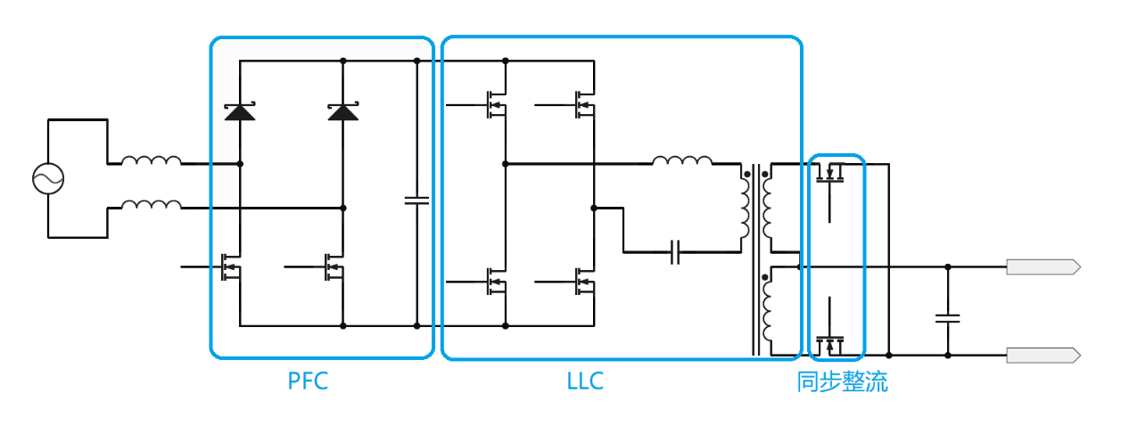 開關電源是當前碳化硅應用最廣泛的領域,適用于通信電源、服務器電源等高效率要求、高功率要求應用。碳化硅肖特基二極管的反向恢復電流幾乎為0,提高了電源轉換效率、減少損失、減小體積、減小噪聲。碳化硅MOSFET具有高頻低損耗特點,采用碳化硅器件實現的PFC、LLC、同步整流結構,有效提高電源轉換效率。